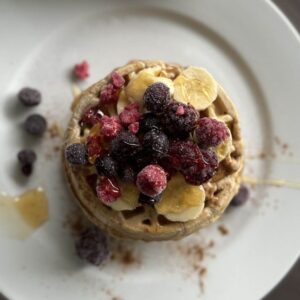 - Cook pancakes on each side until golden brown and serve with berries and/or Greek yogurt.