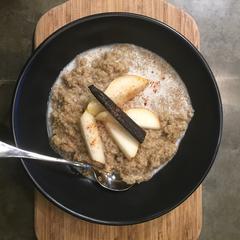 - Serve with fruit (we used Poached pears!).